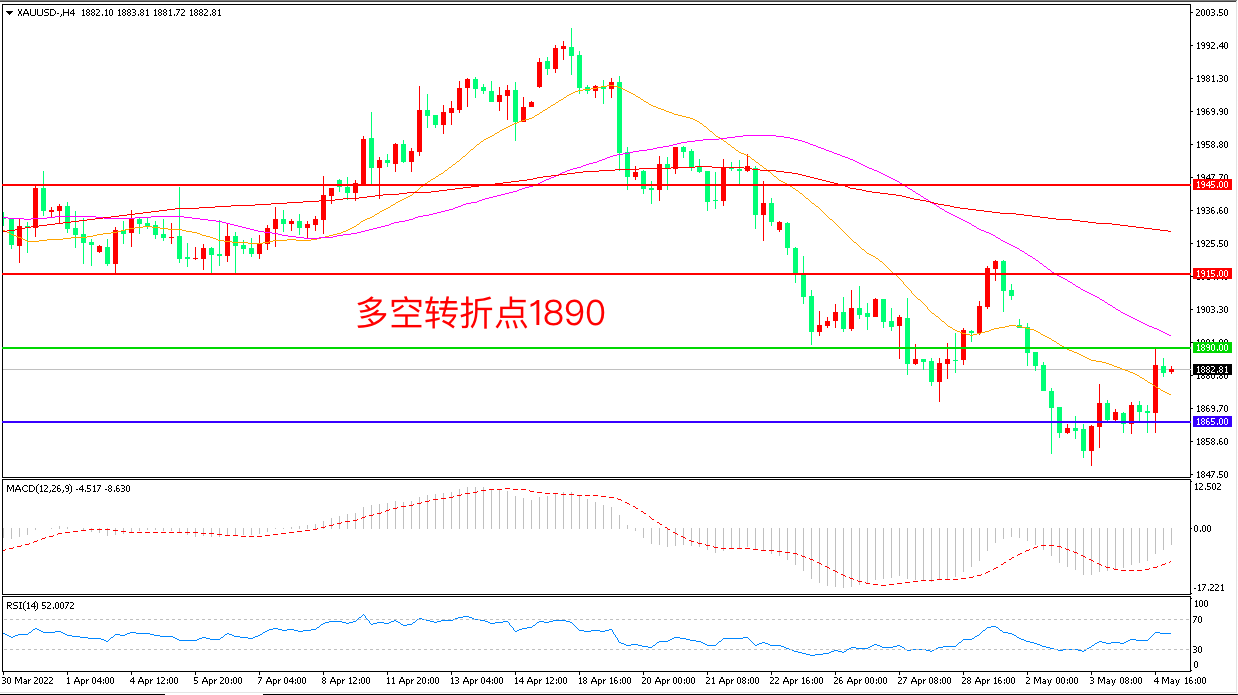 交易策略:在1865.00之上看涨,目标1890.00 1915.00