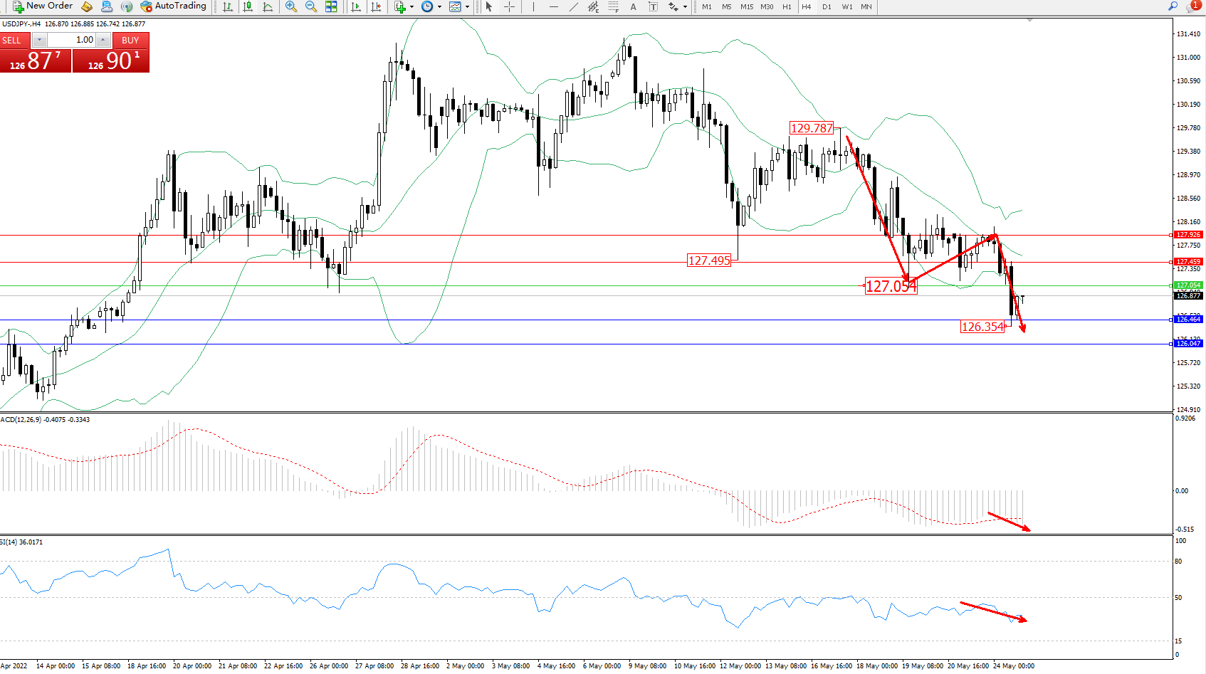 交易策略:127.054下方看跌,目标126.464、126.047