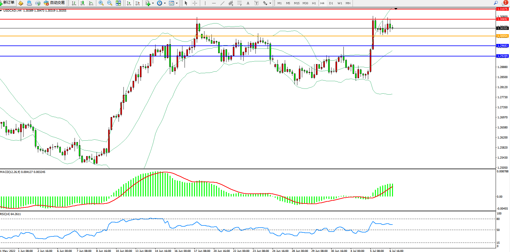 交易策略:1.30054上方看涨,目标1.30692、1.31075