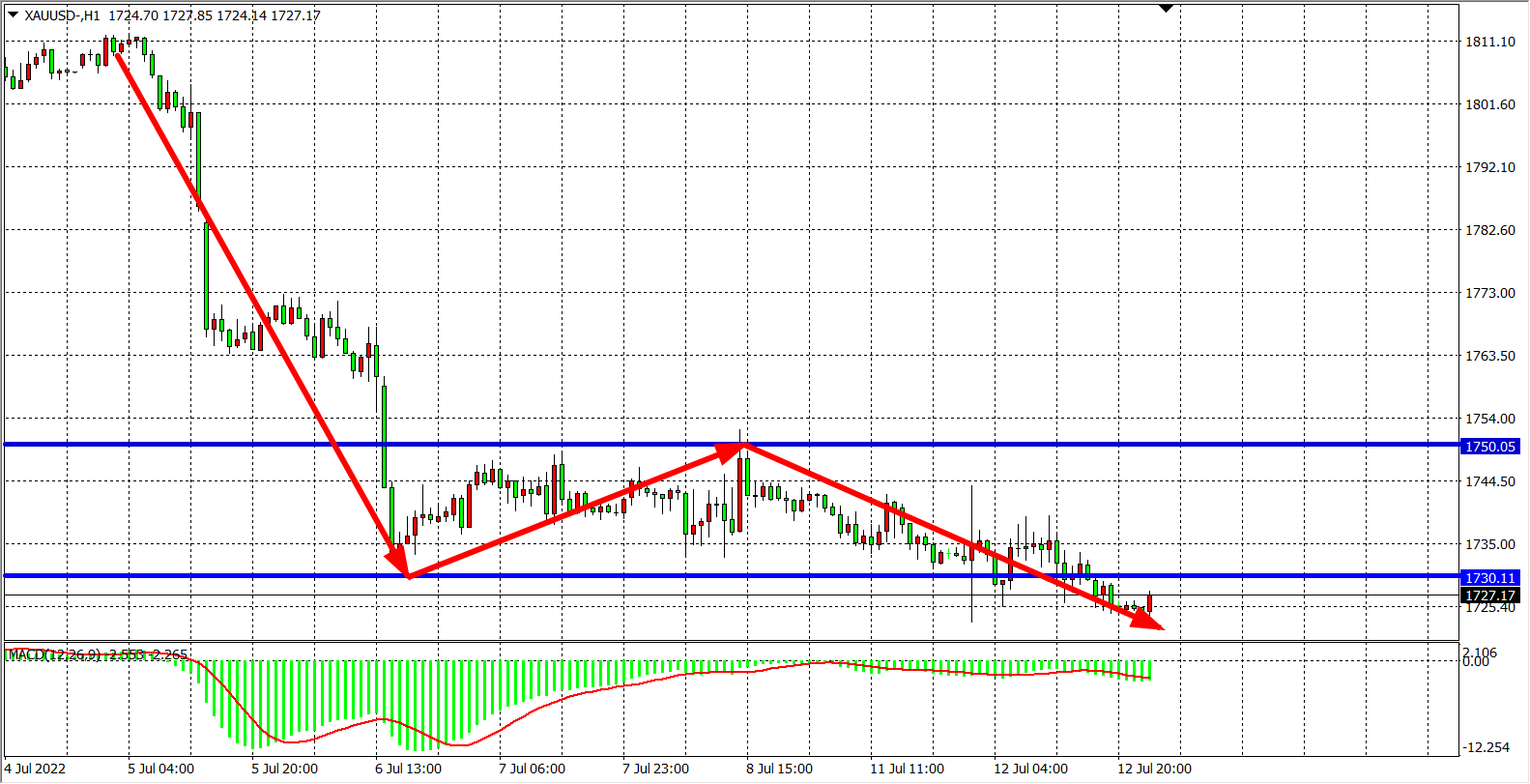 交易策略:在1730.00之下看跌,目标1720.00 1700.00