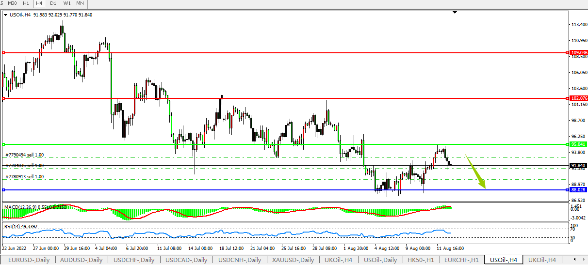 USOIL:95下方坚定做空