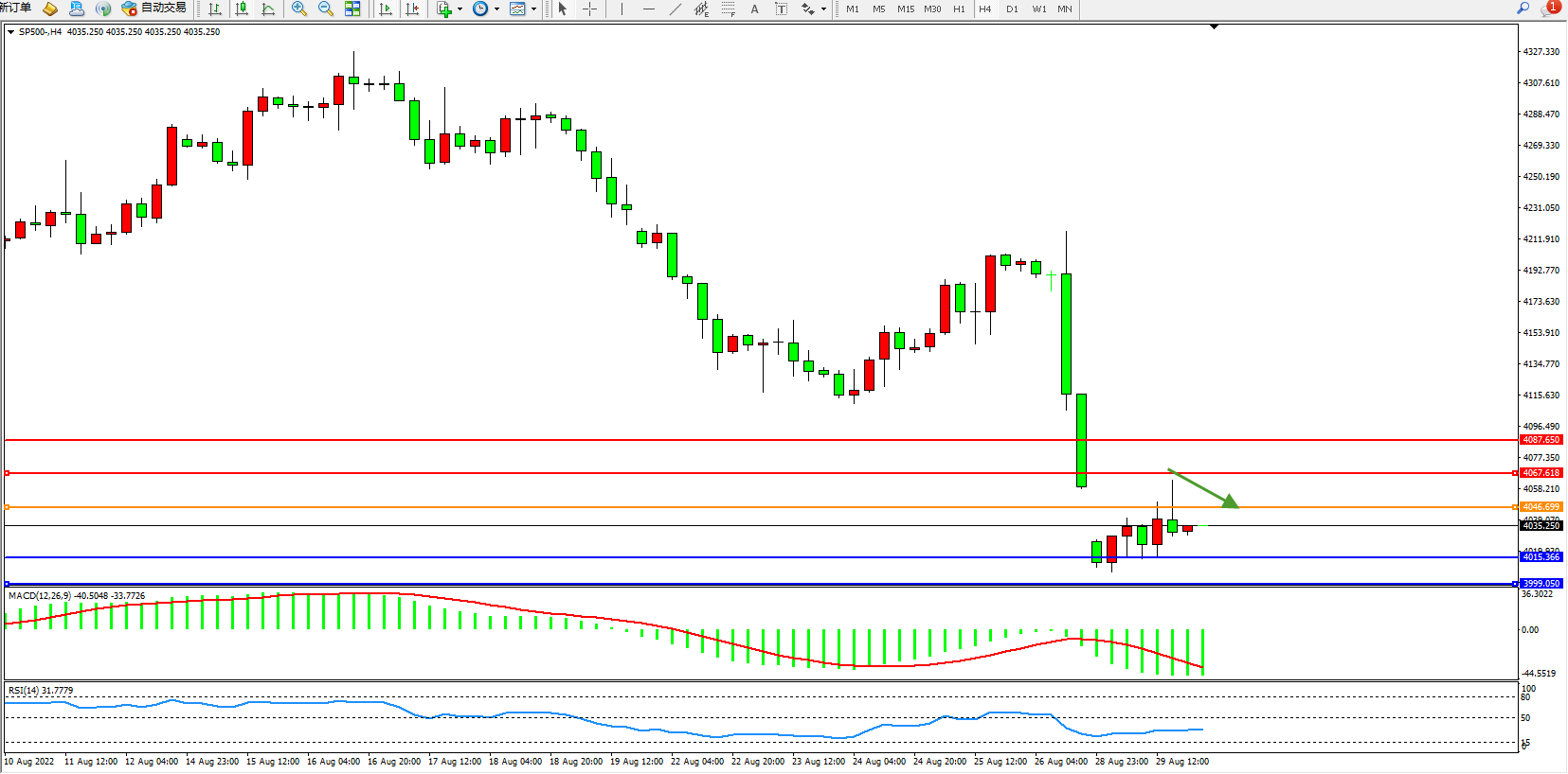 标普SP500——4小时K线图显示: