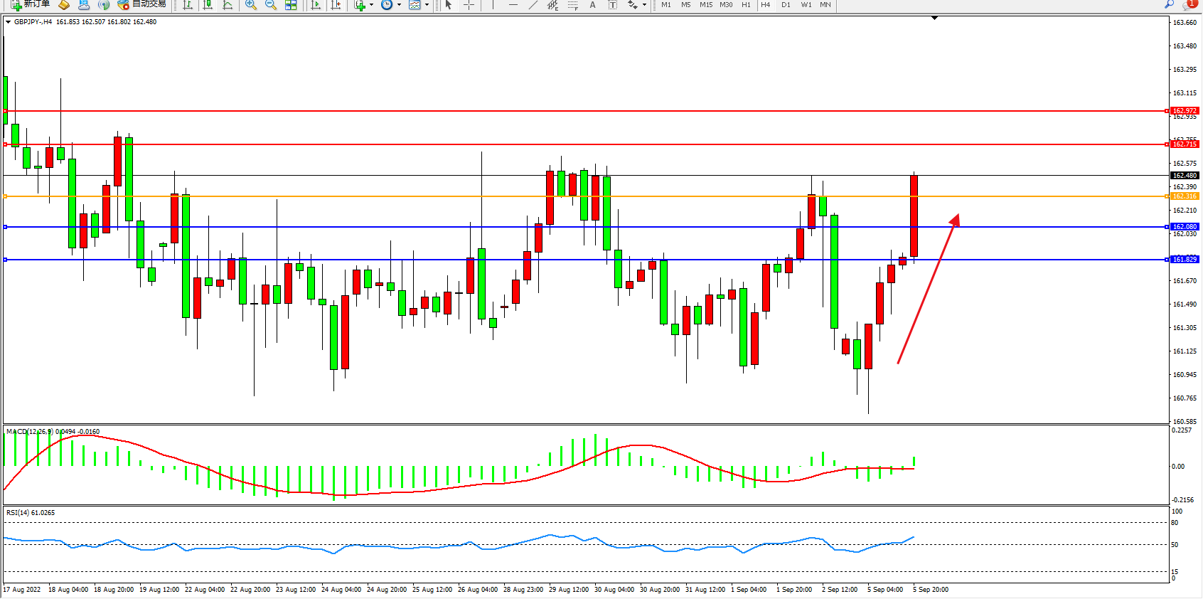 交易策略:162.316上方看涨,目标162.715、162.972