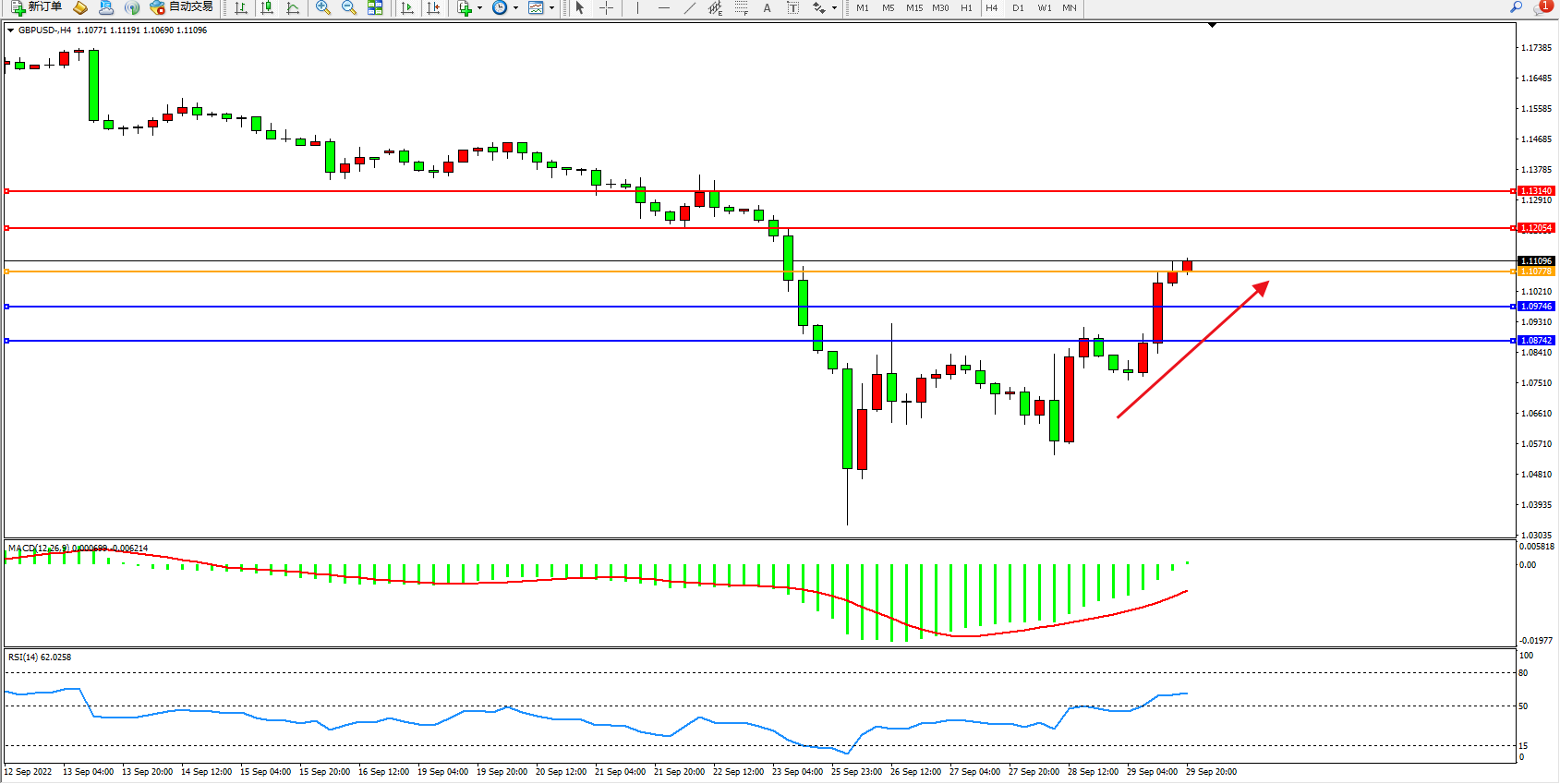 英镑兑美元维持1.11096附近震荡,为防止金融危机进一步蔓延,英国央行宣布从9月28日-10月14日临时购买长期国债,以恢复市场的有序性,每次操作规模不超过50亿英镑。但其保持一年减少800亿英镑的国债持有量目标不变。