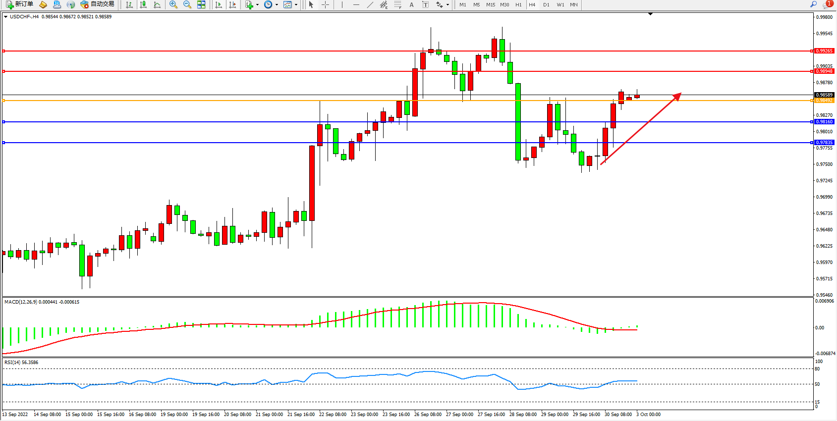美元瑞郎USDCHF——4小时K线图显示: