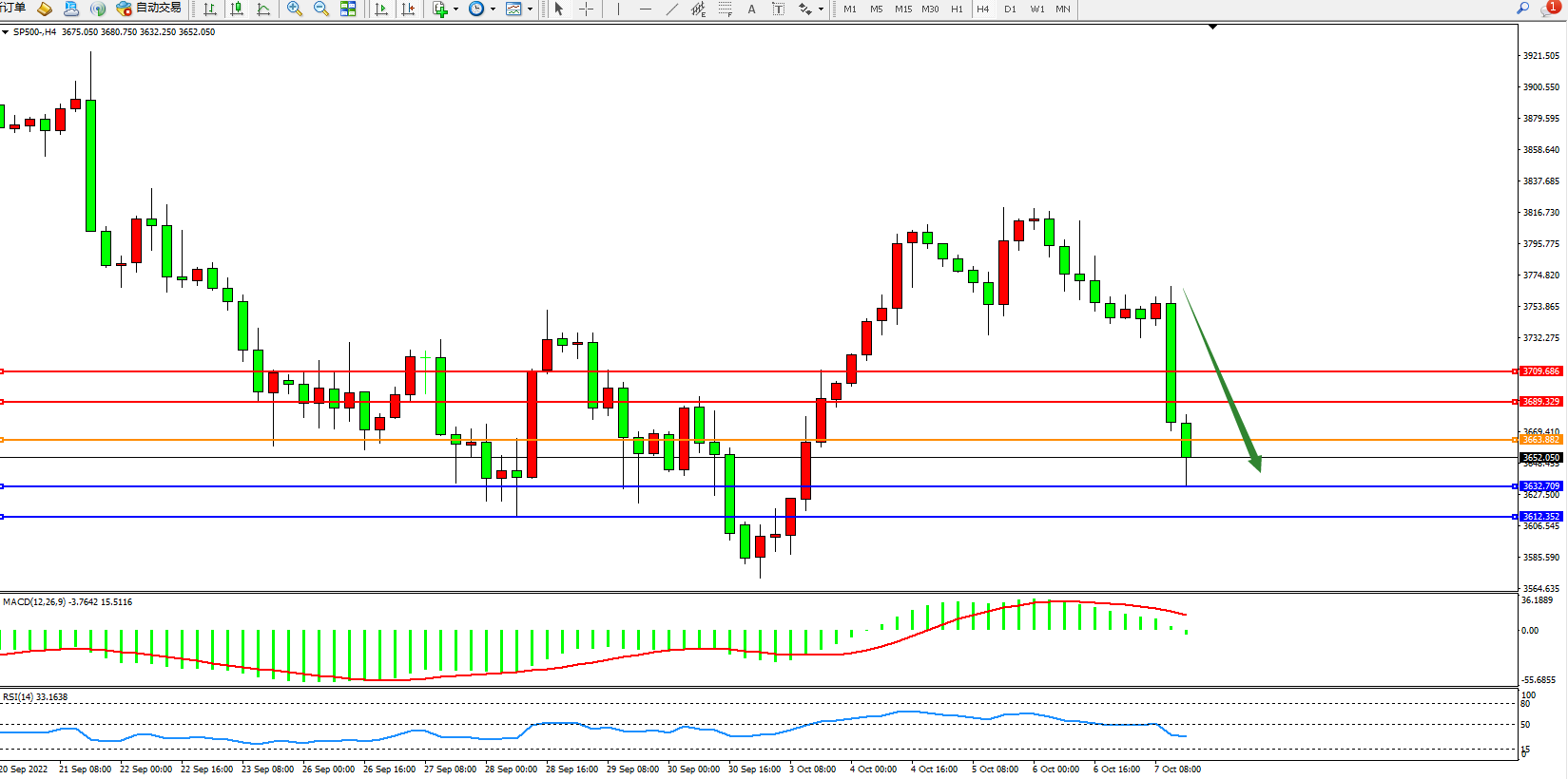 标普SP500——4小时K线图显示: