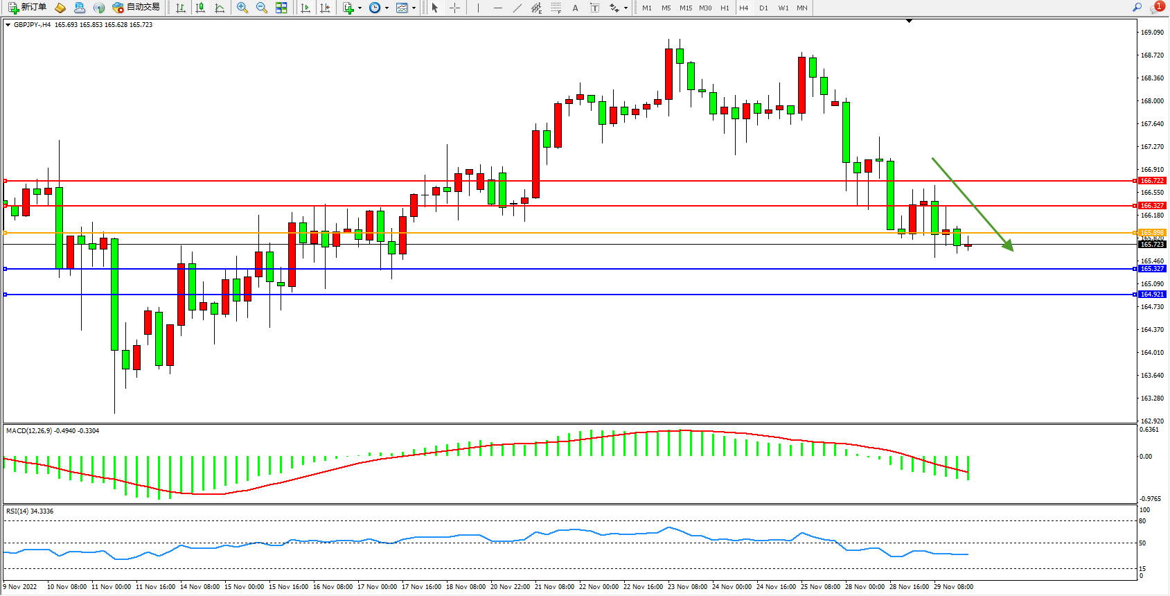 交易策略:165.898下方看跌,目标165.327、164.921