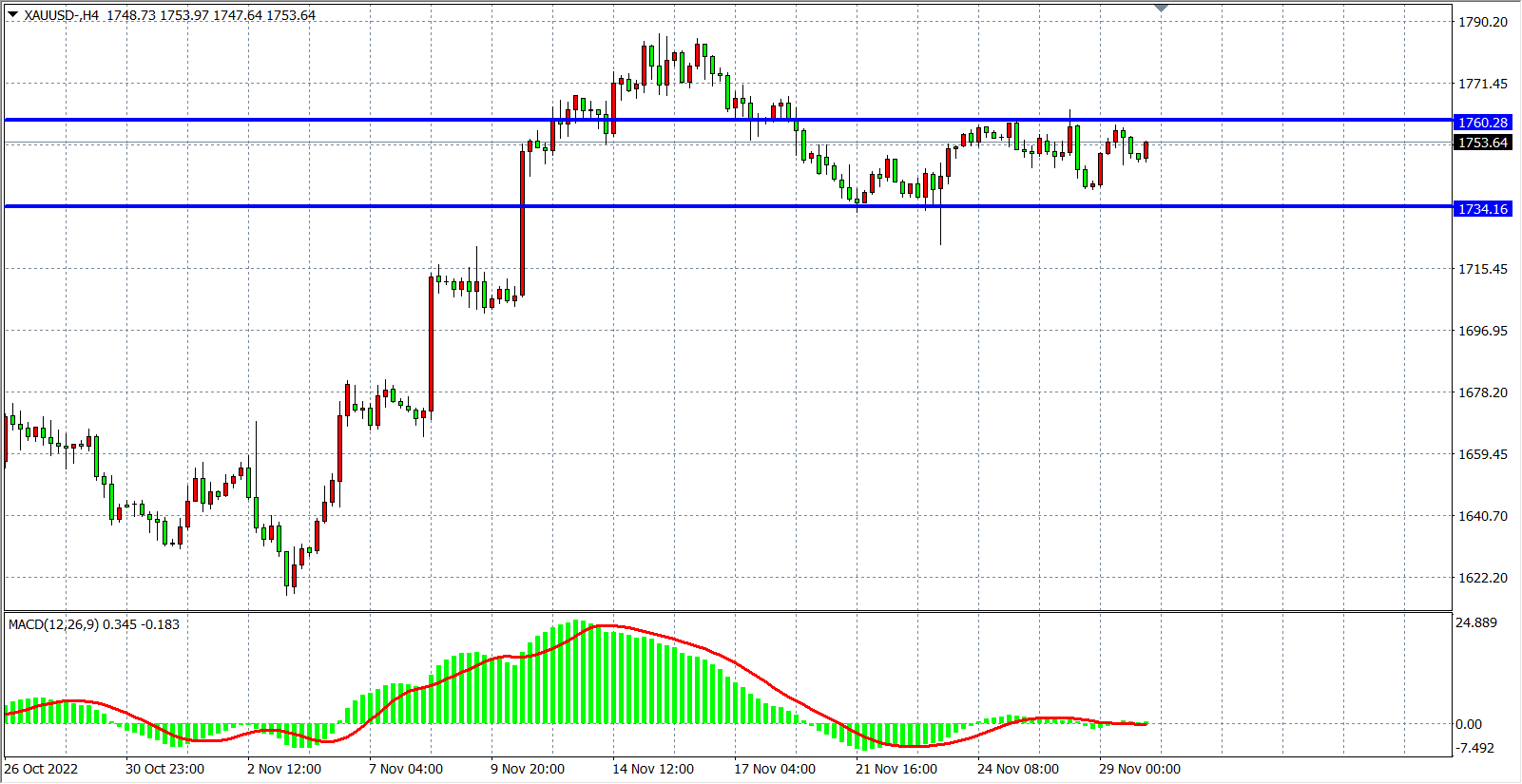现货黄金XAUUSD 4小时图