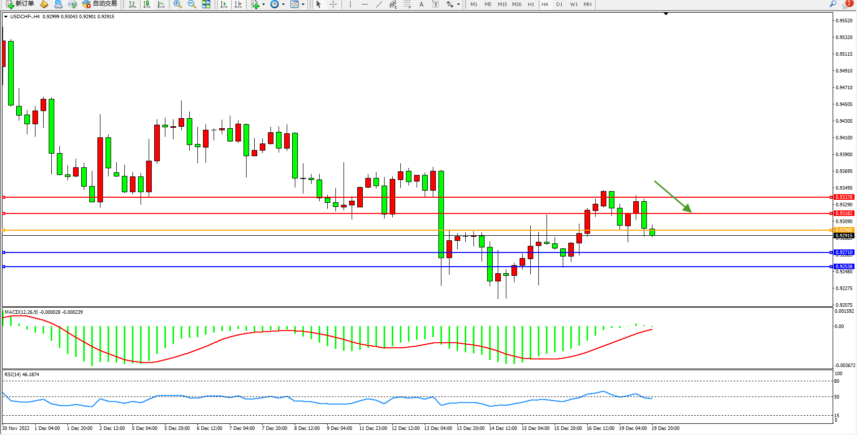 美元兑瑞郎维持0.92915附近震荡,得益于美联储官员更加鹰派的评论,预计2023年底之前至少还将累计加息75个基点。加上其他主要央行的进一步收紧货币政策前景,限制了瑞郎的升势。
