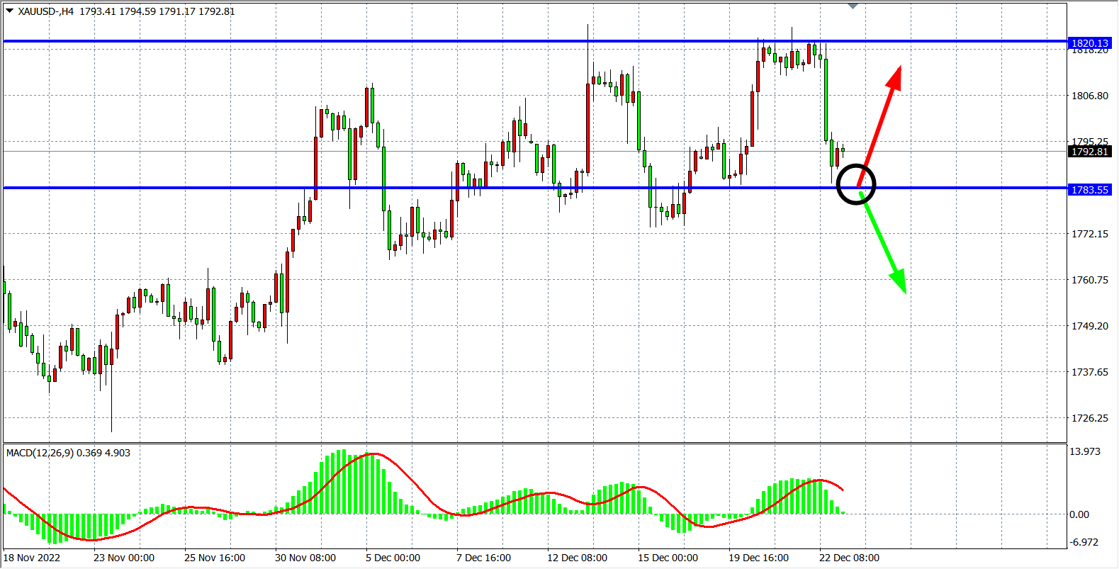 交易策略:在1783.00之上看涨,目标1805.00         1825.00