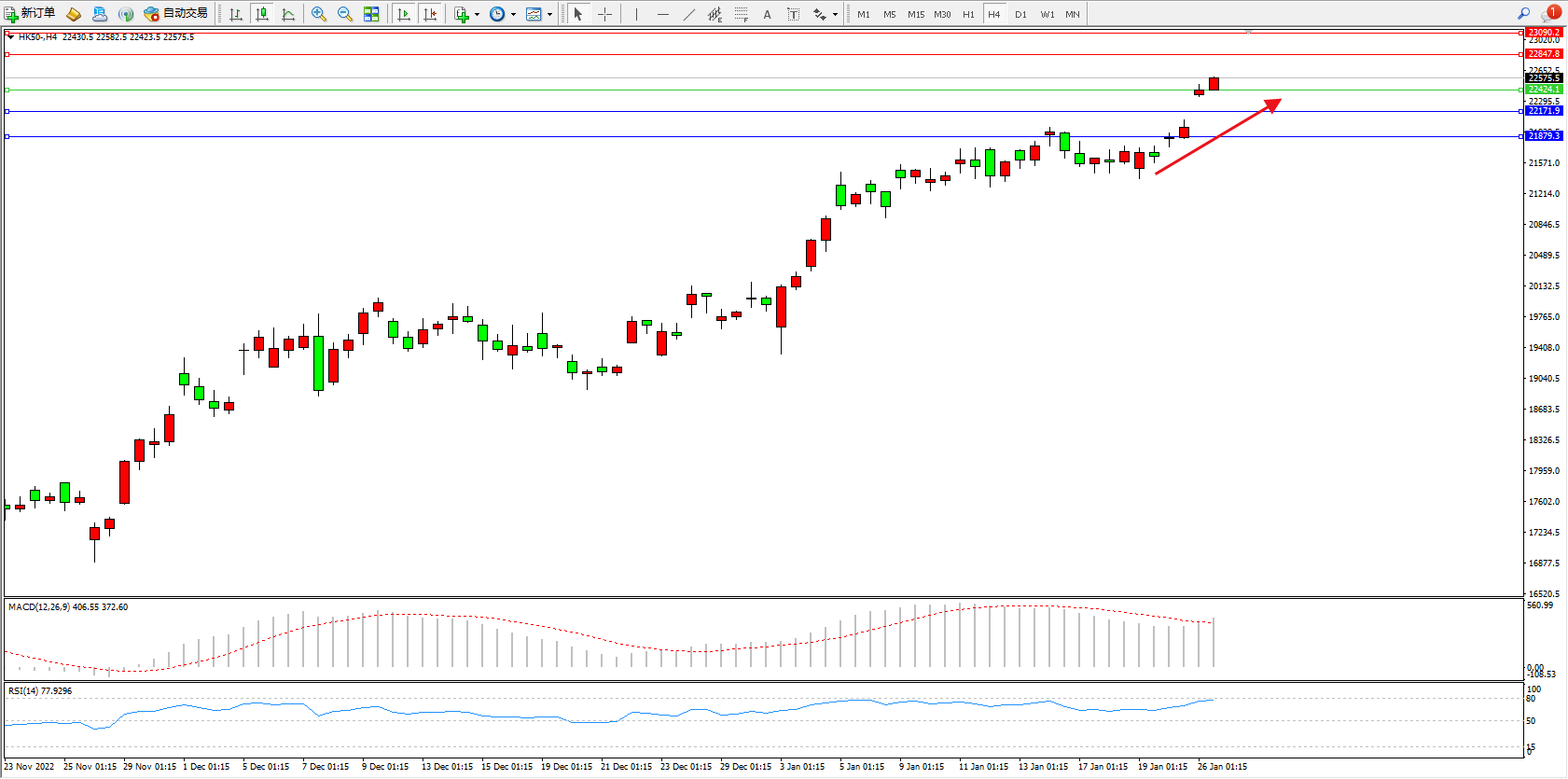 恒指HK50 4小时图
