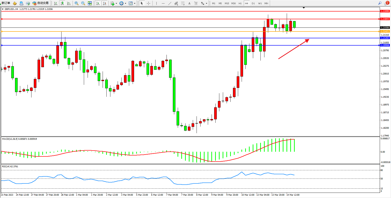 交易策略:1.21421上方看涨,目标1.21843 1.22099