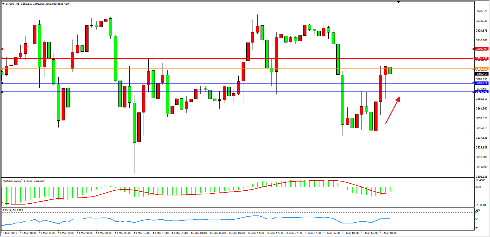标普SP500——4小时K线图显示: