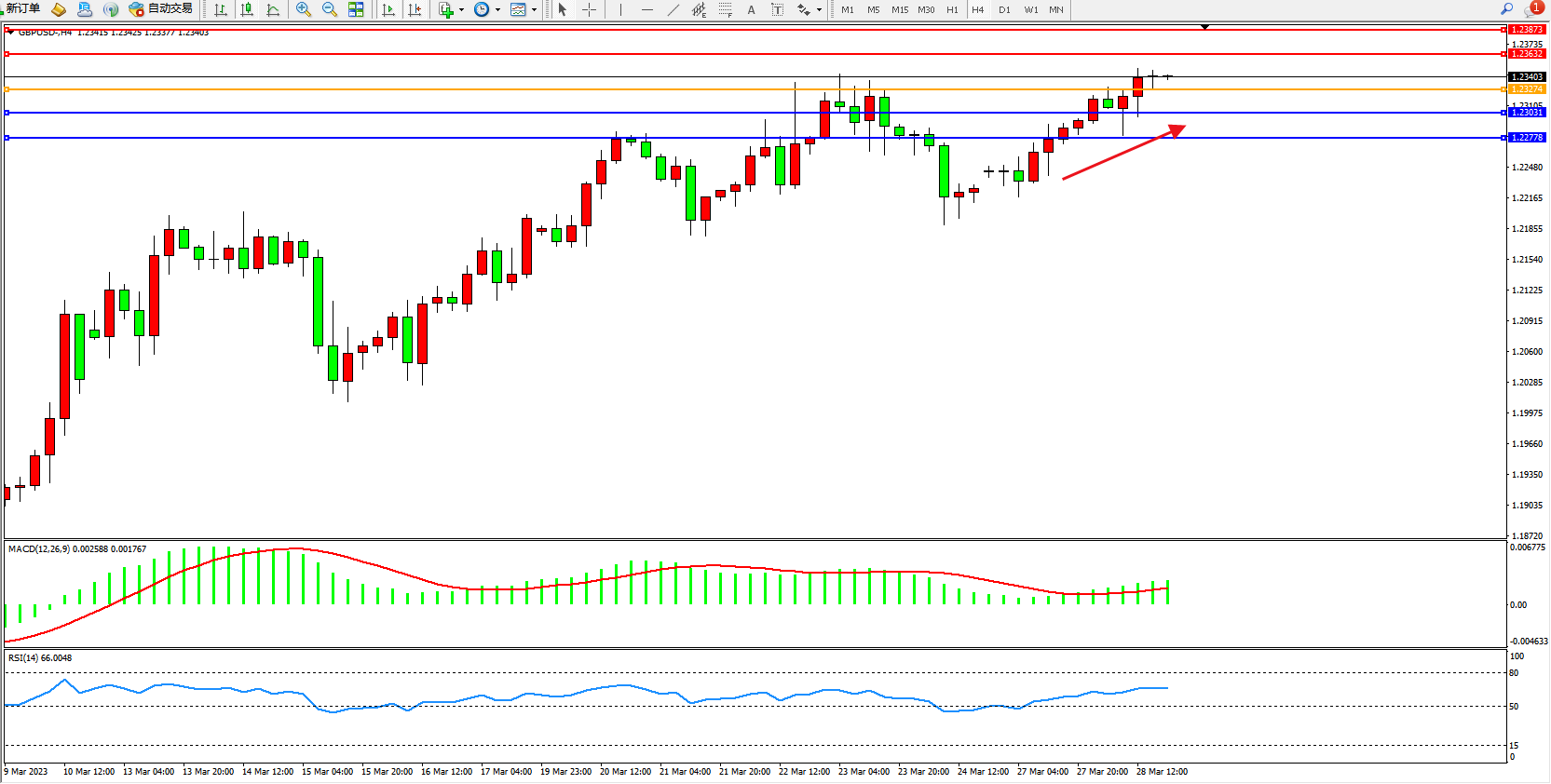 英镑兑美元维持1.23403附近震荡,随着英国央行和美联储关于未来货币政策的信号出现分歧,英镑兑美元可能扩大涨势。英国央行行长贝利说英国银行系统处于良好的状态,如果通胀压力持续存在,进一步加息是可能的。与之相比,在银行业面临压力之际,美联储对未来政策发出的信号则相对更为谨慎。