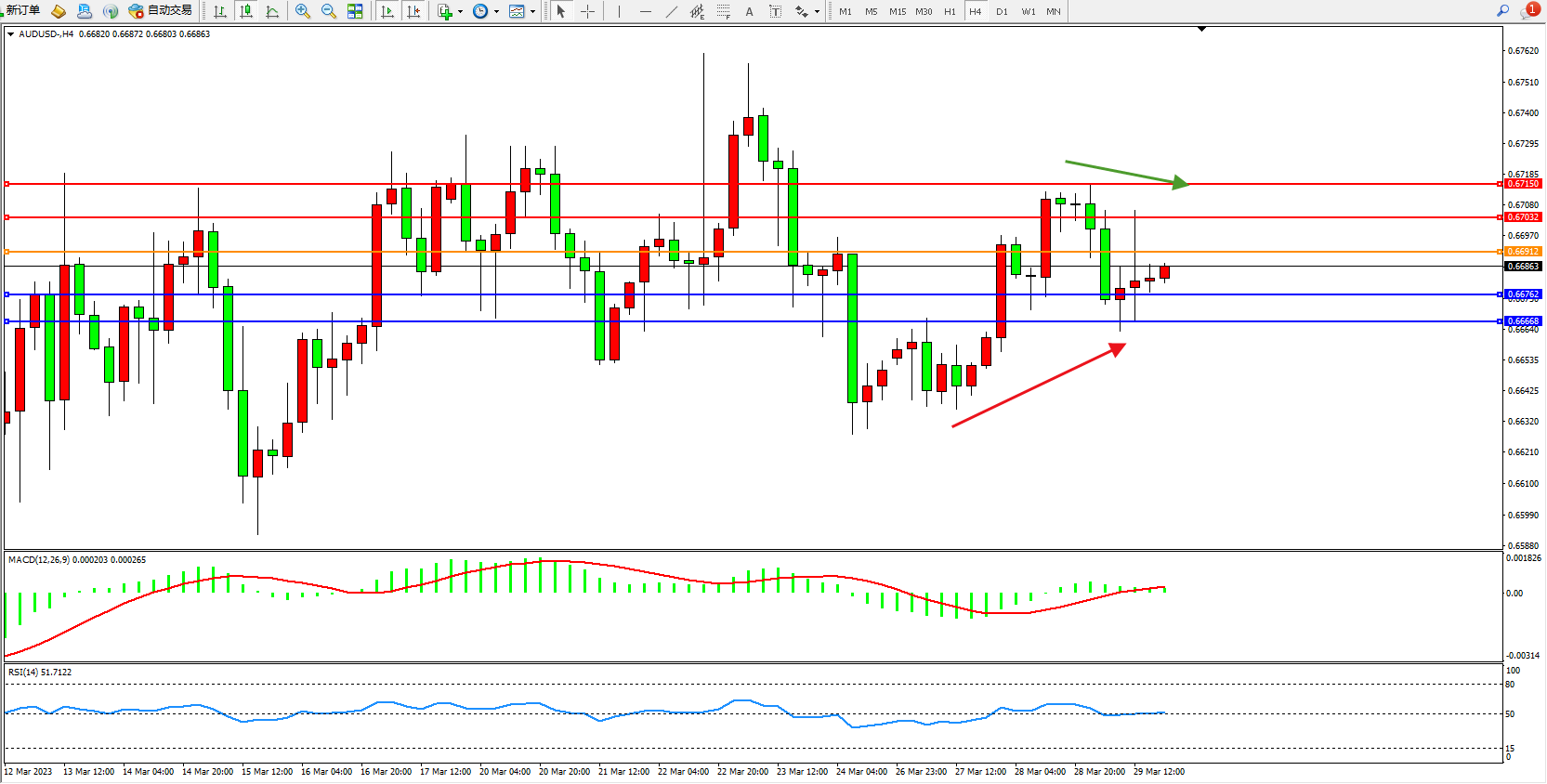 备选策略:0.66912上方看涨,目标0.67032 0.67150