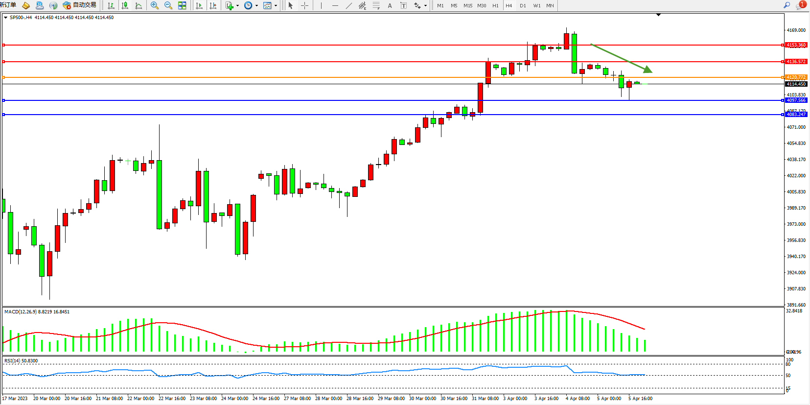 标普SP500——4小时K线图显示: