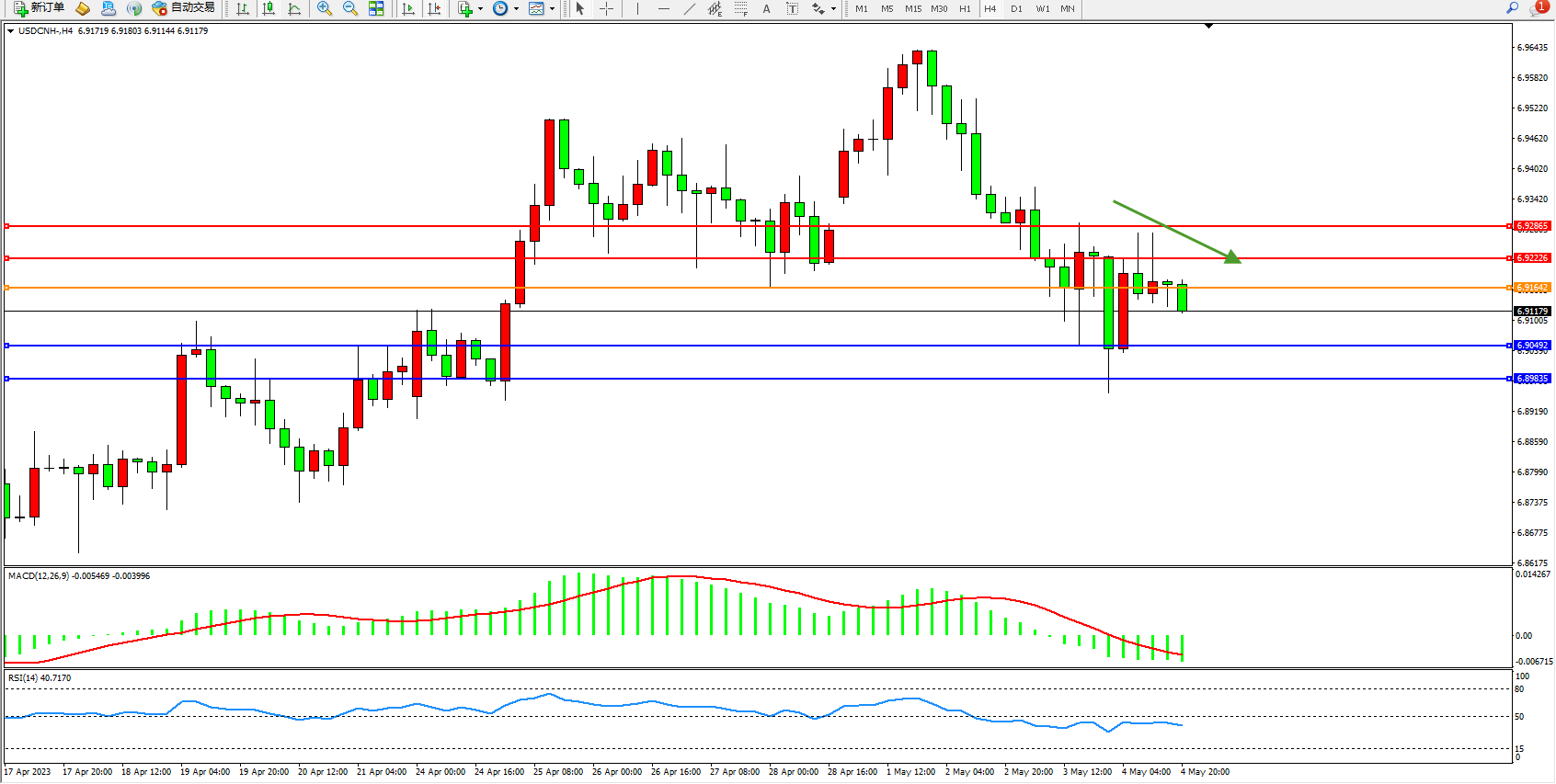 交易策略:6.91642下方看跌,目标6.90492 6.89835