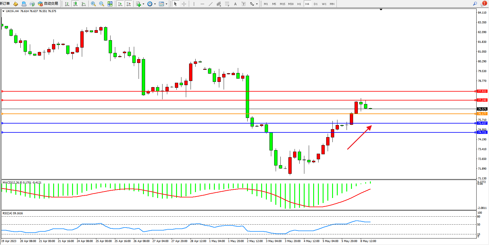 布油UKOil——4小时K线图显示: