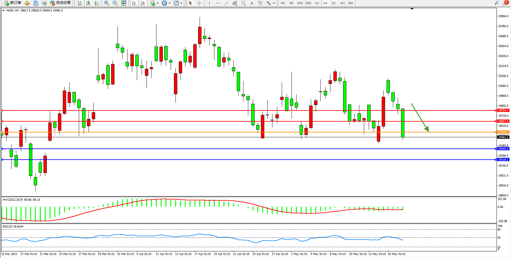 恒指HK50 4小时图