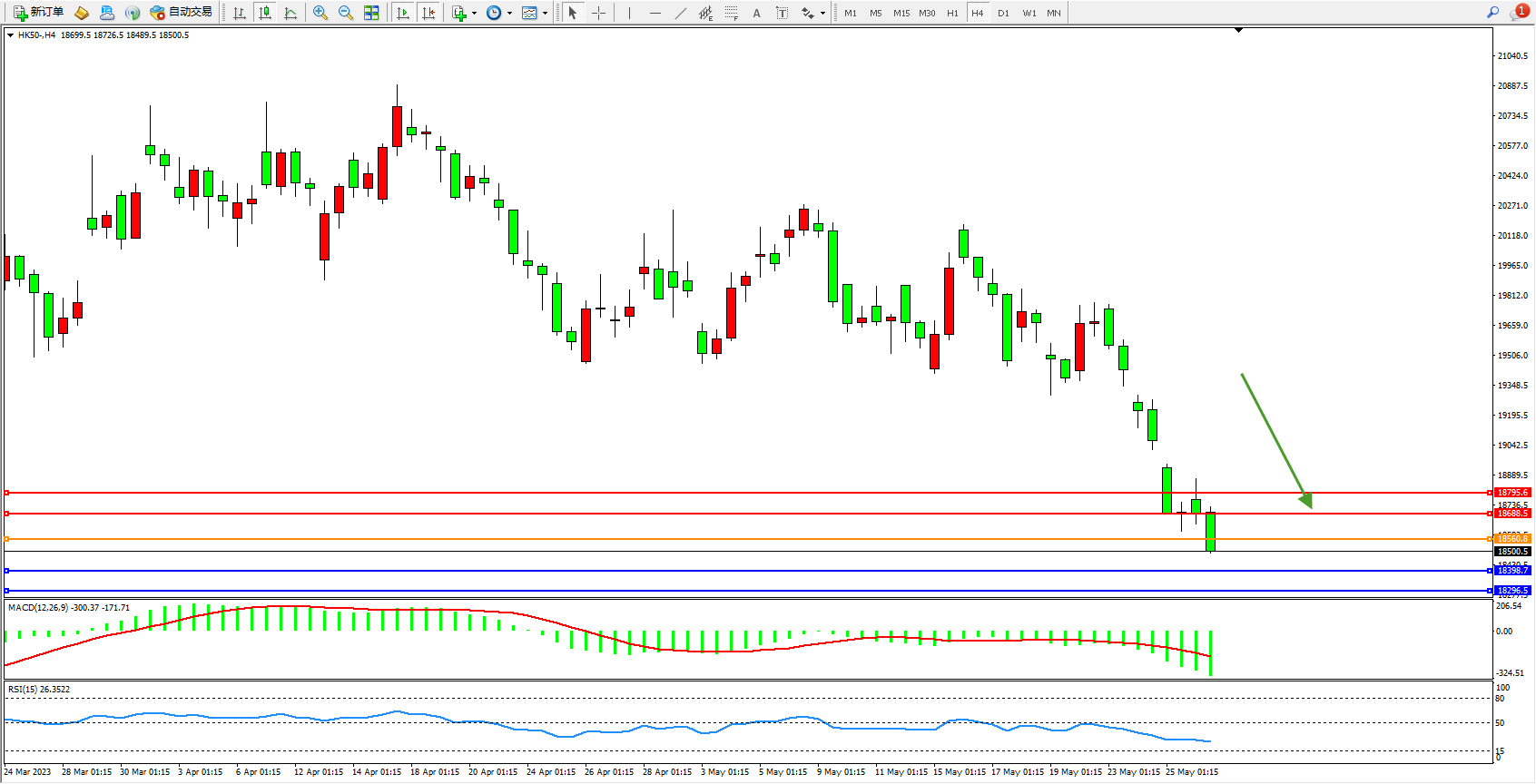 恒指HK50 4小时图
