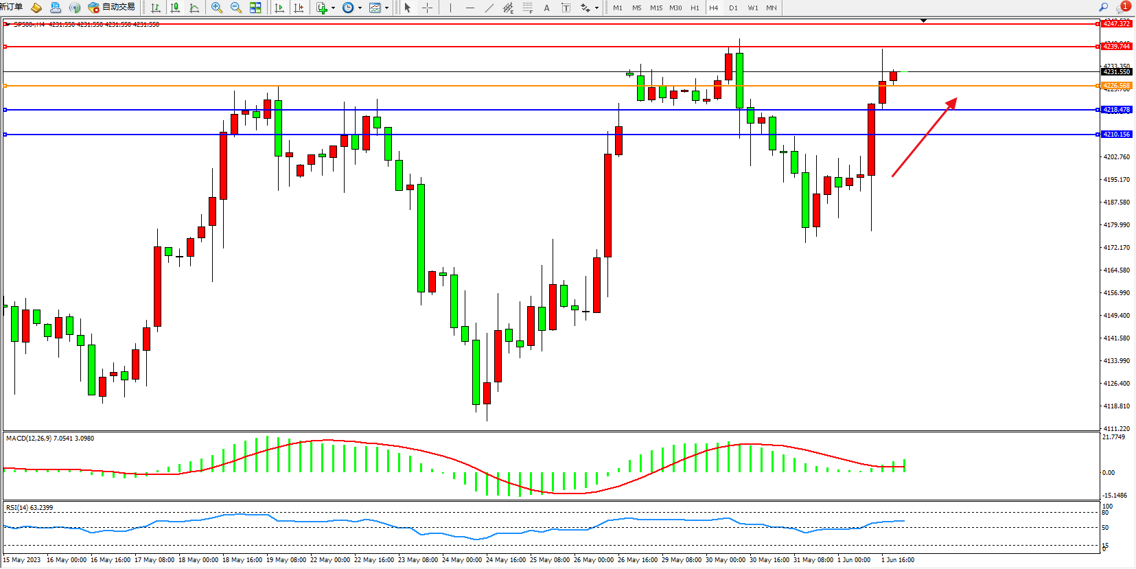 标普SP500——4小时K线图显示: