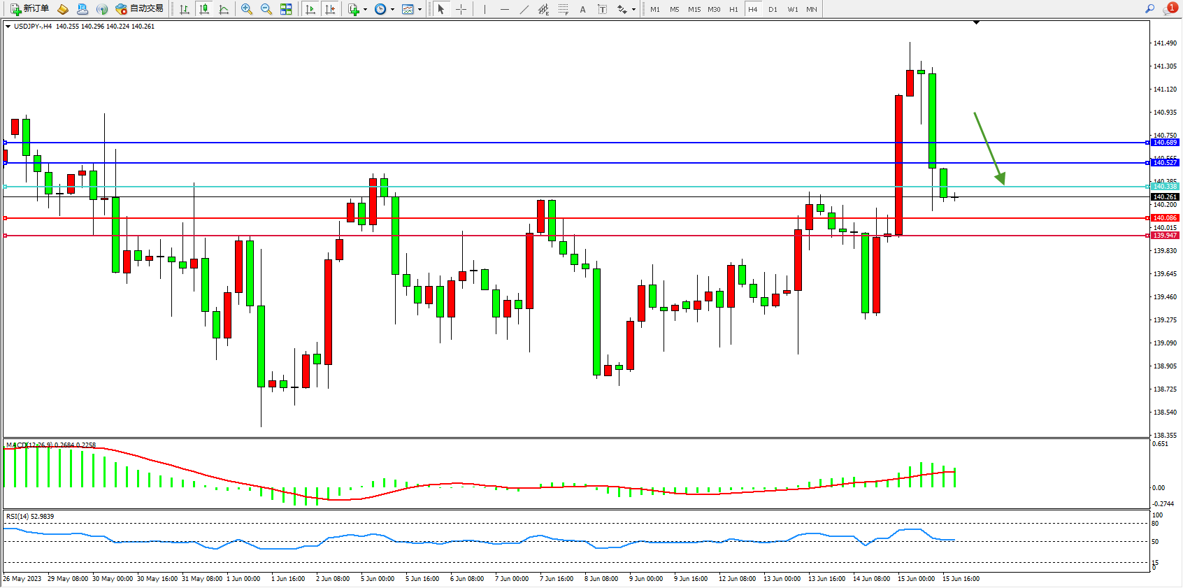 交易策略:140.338下方看跌,目标140.086 139.947