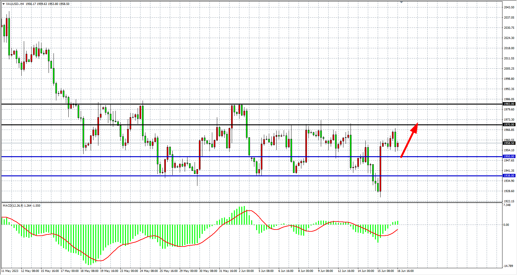 4小时图看,黄金维持在1950之上运行,MACD量能在零轴之上小幅放量,行情继续宽幅整理,支撑关注1950-1938,上方压力1970-1983。