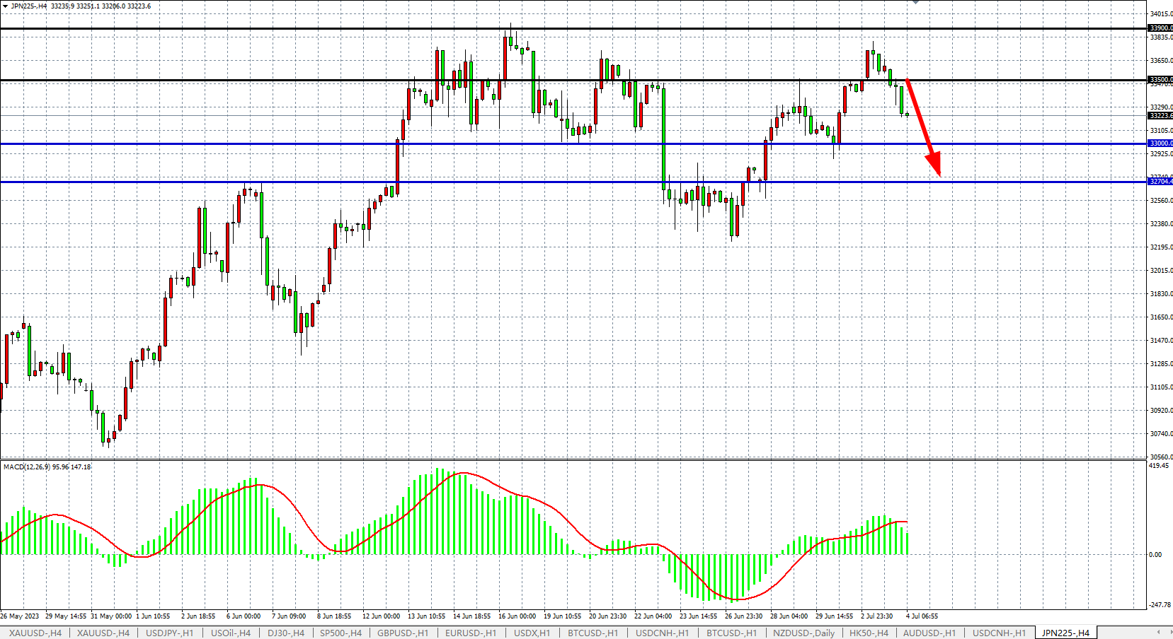 JPN225四小时图