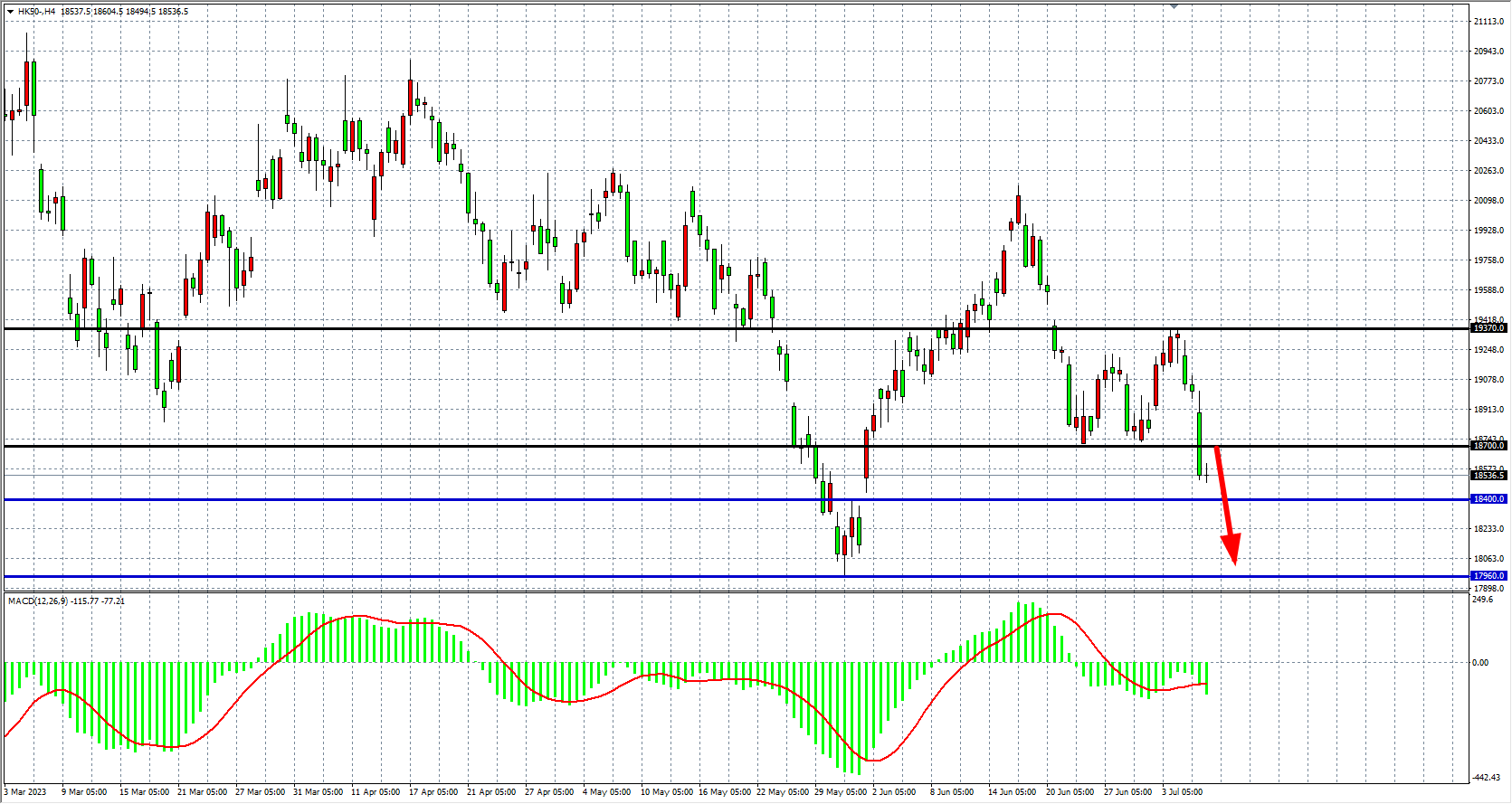 恒指:破位下跌