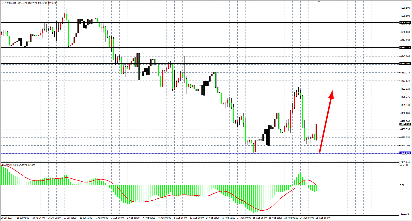 交易策略:4360 上方看涨,目标4480 4530