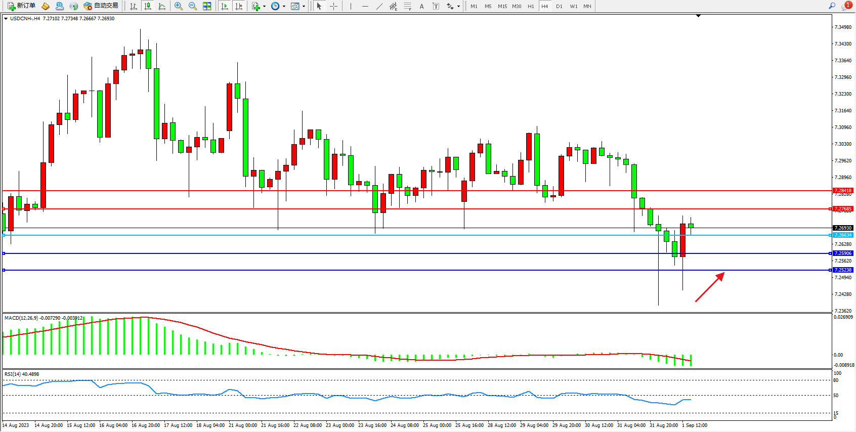 美元兑人民币维持7.26930附近震荡,中国央行:将金融机构外汇存款准备金率由现行的6%下调至4%。中国8月财新制造业PMI 51,创6个月最快增速。