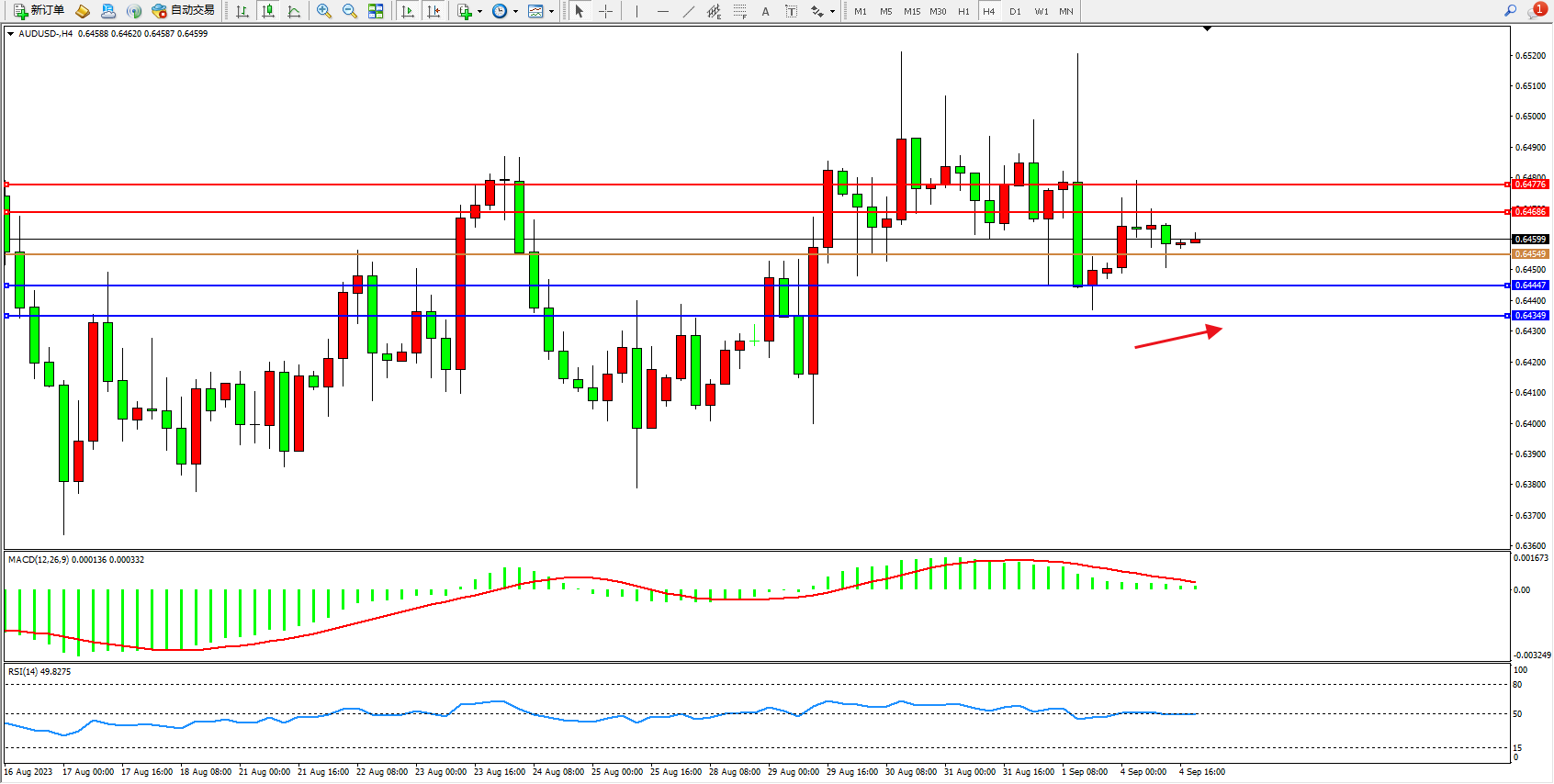 备选策略:0.64549下方看跌,目标0.64447  0.64349