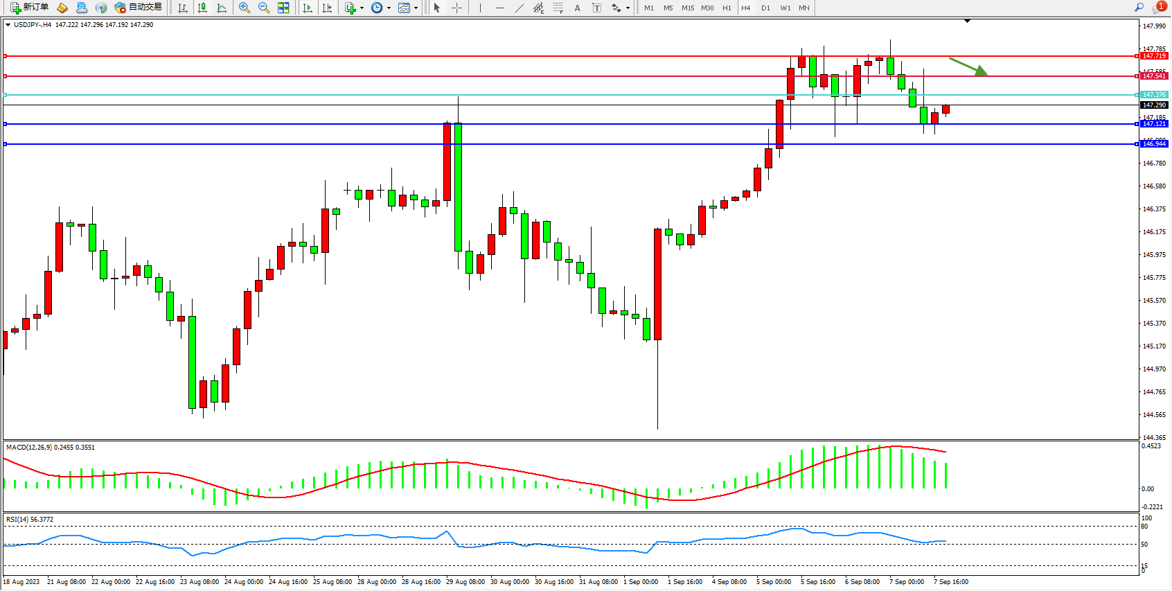 交易策略:147.376下方看跌,目标147.121 146.944