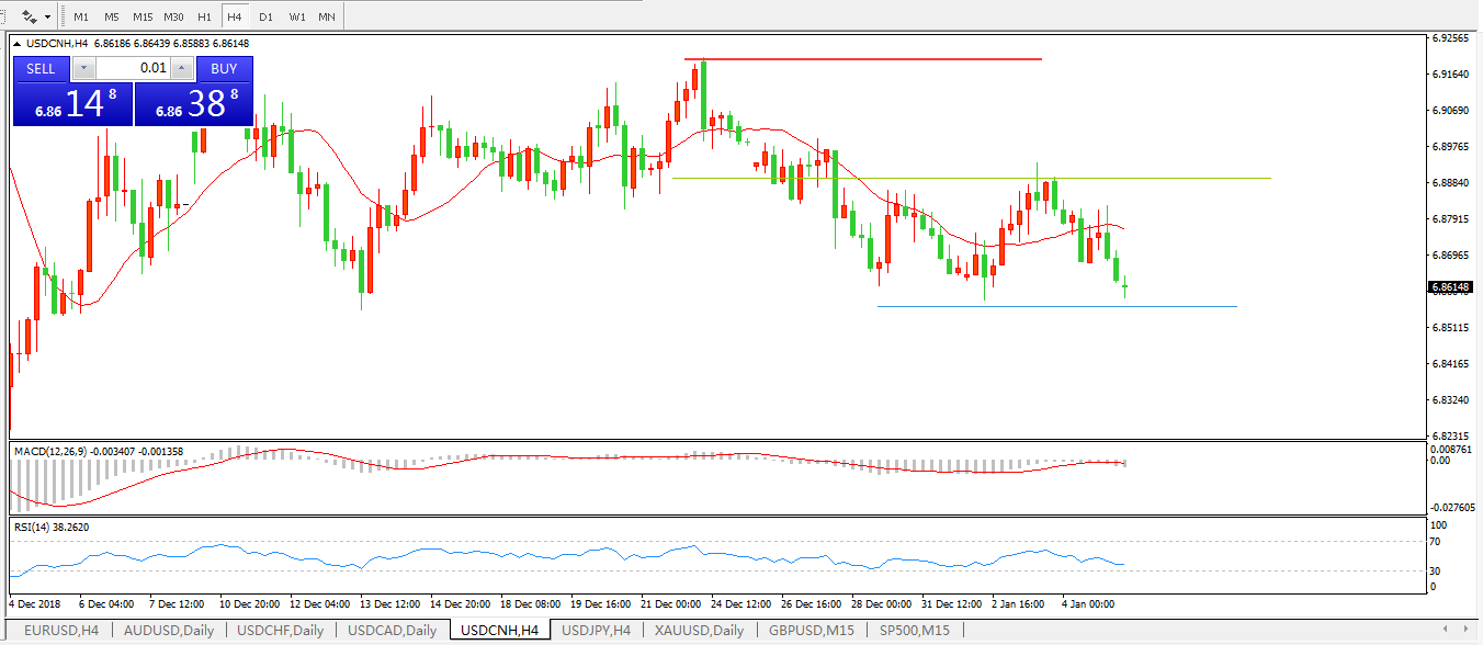 美元兑人民币USDCNH4小时图: