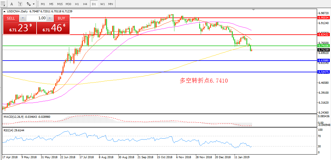 交易策略:在6.7410之下看跌,目标6.6308    6.5447