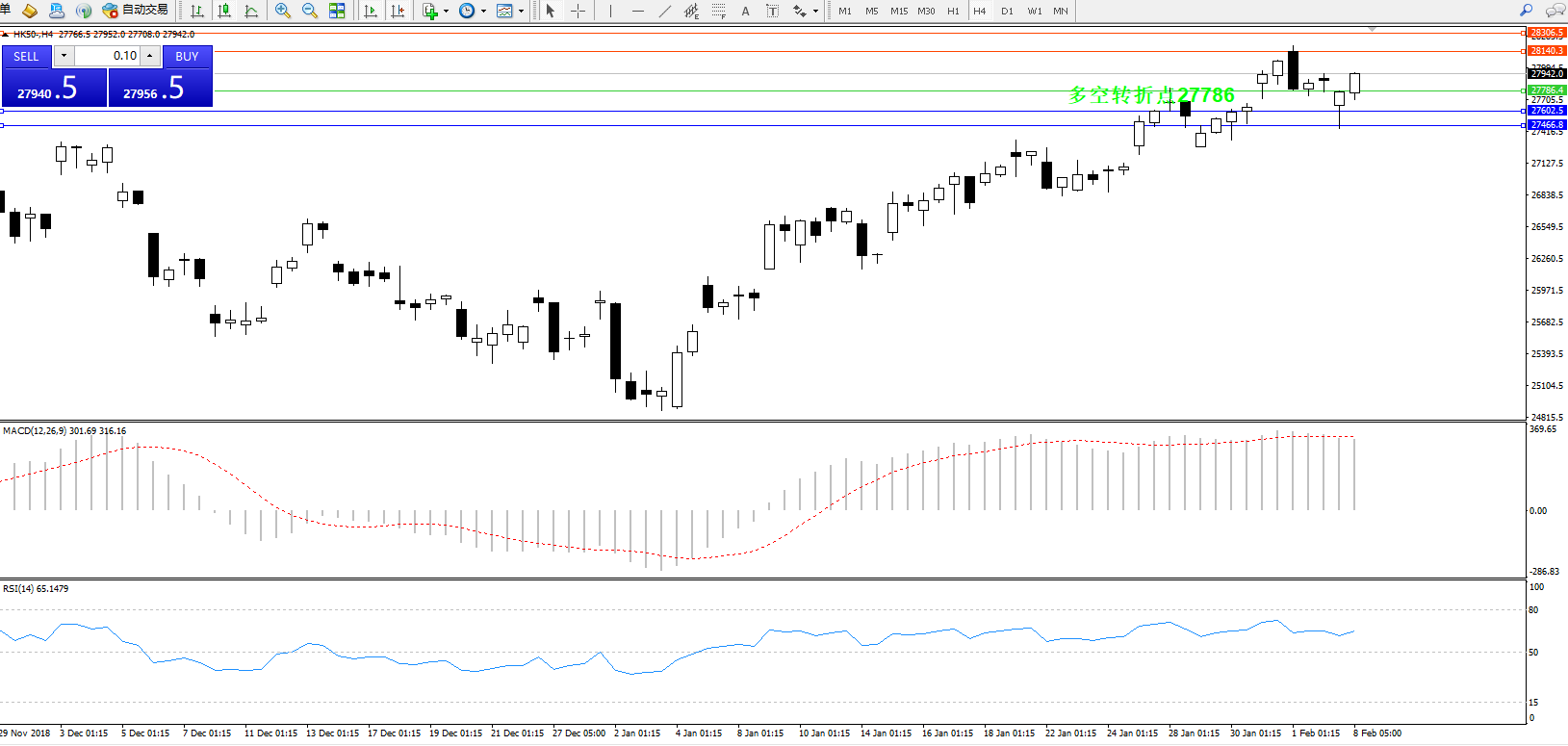 交易策略:27786上方看涨,目标28140、28306