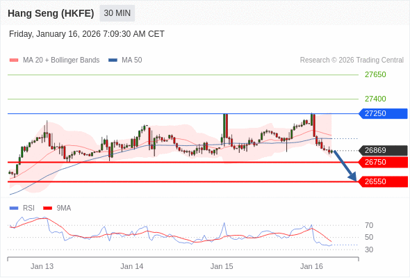 在 27250 之下,看跌,目标价位为 26750 ,然后为 26550 。