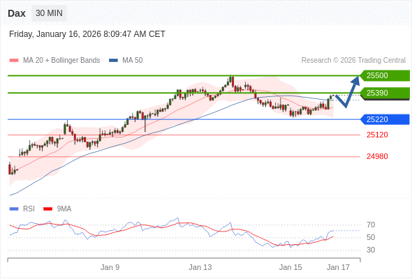 在 25220 之上,看涨,目标价位为 25390 ,然后为 25500 。