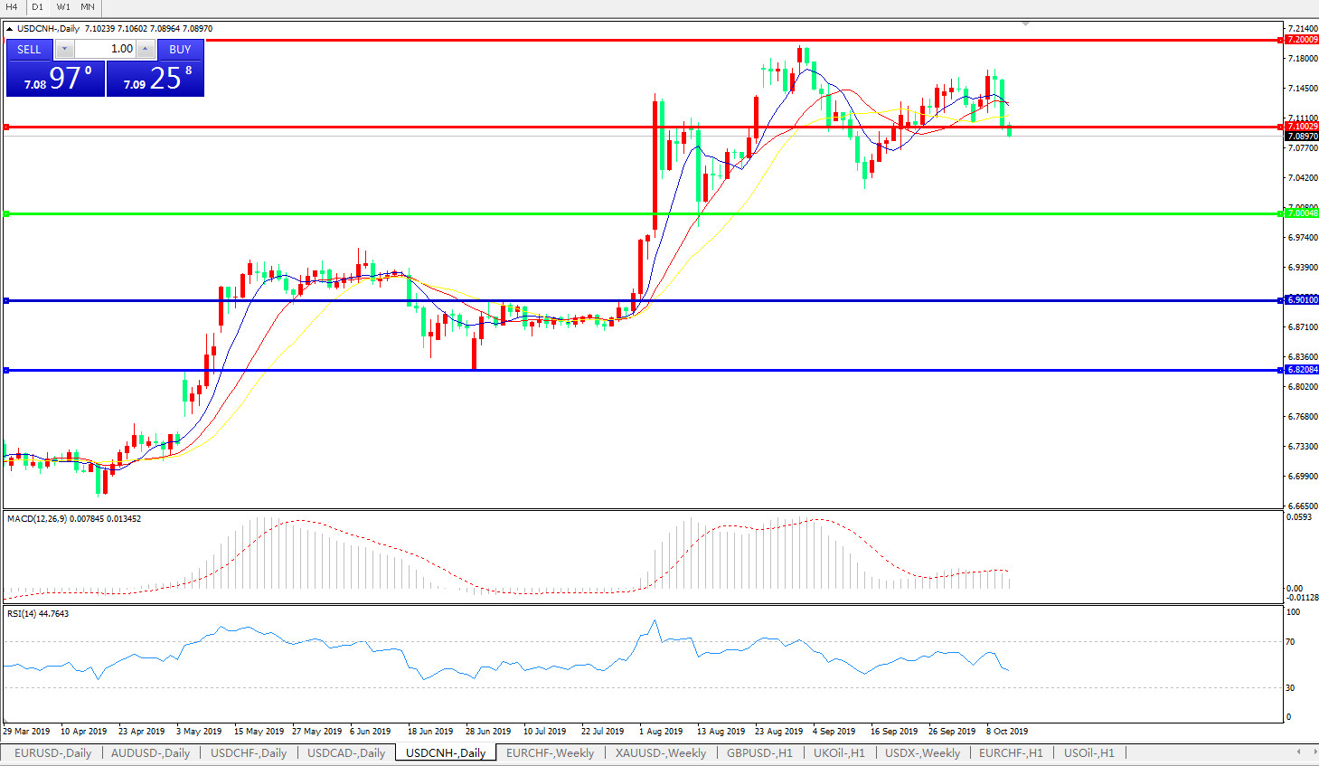 交易策略: 在7.0000之上,看涨,目标价位为7.1000,然后为7.2000。