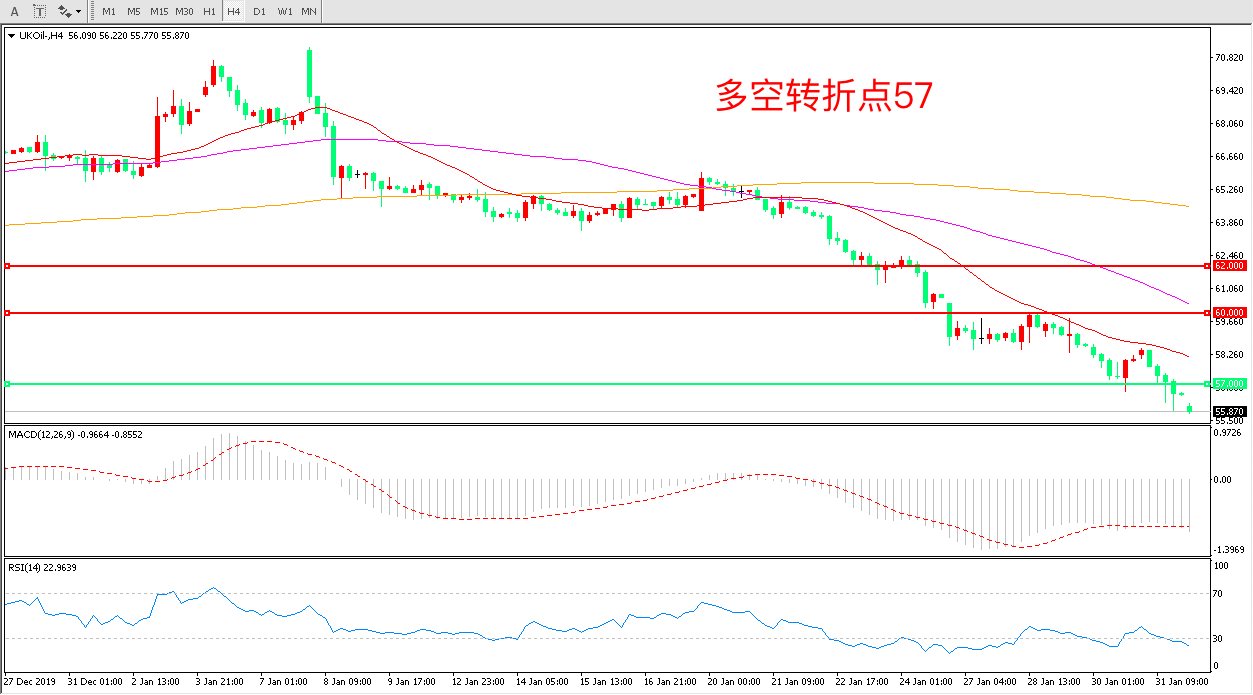 交易策略:在57.00 之下看跌,目标55.00    52.00