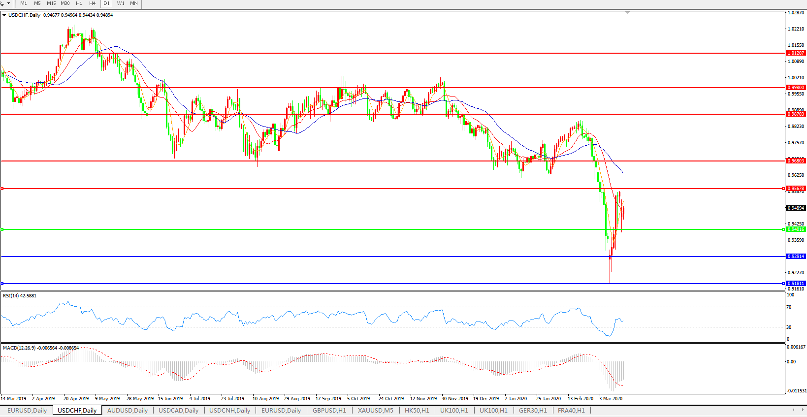 美元兑瑞郎USDCHF 日线图: