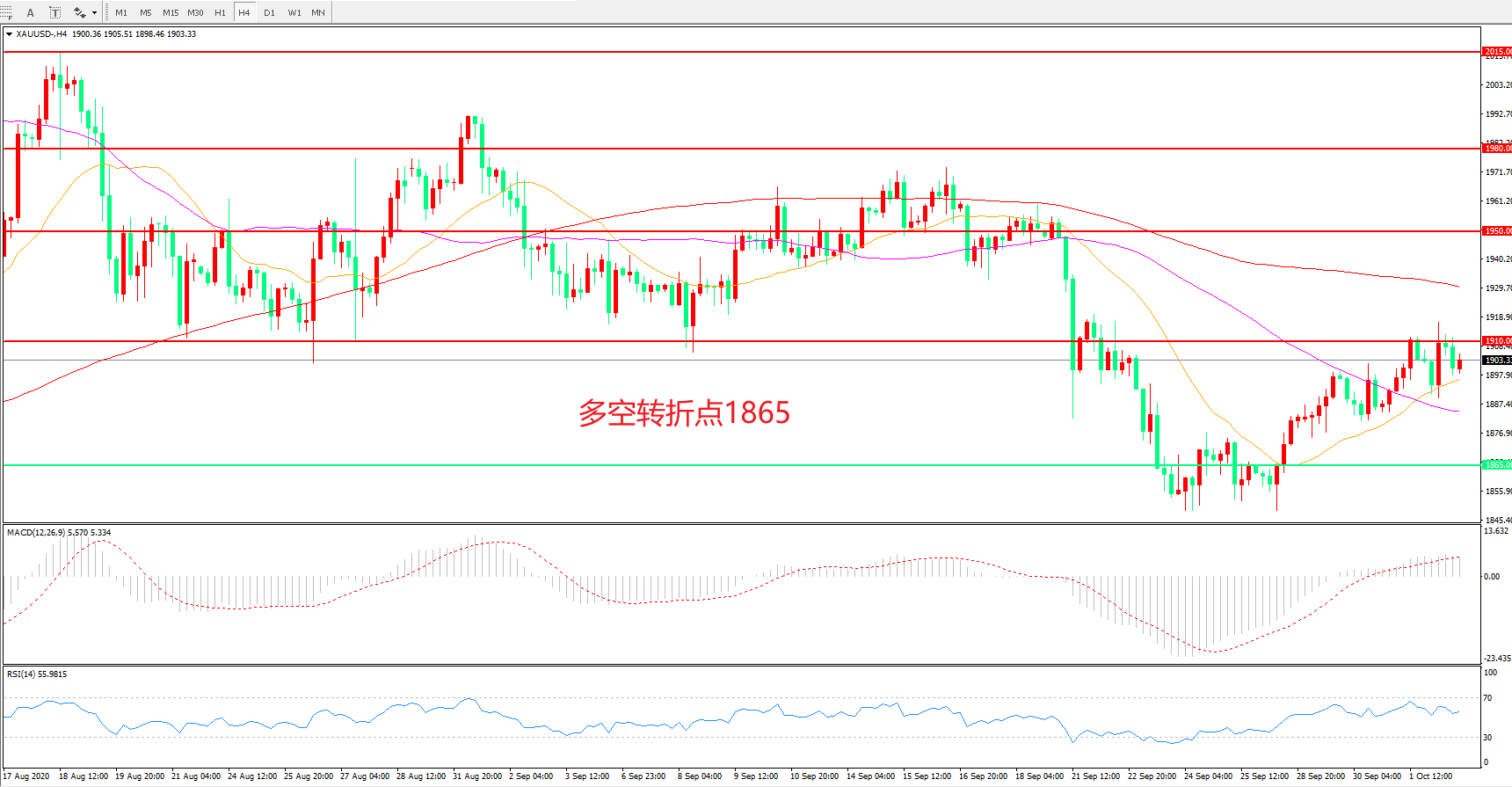 多空转折点:1865.00