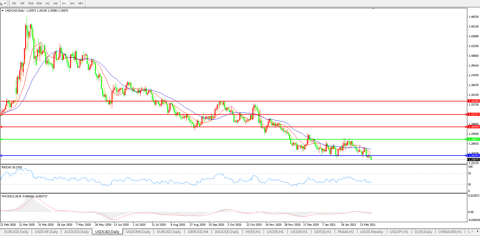 美元兑加元USDCAD 日线图: