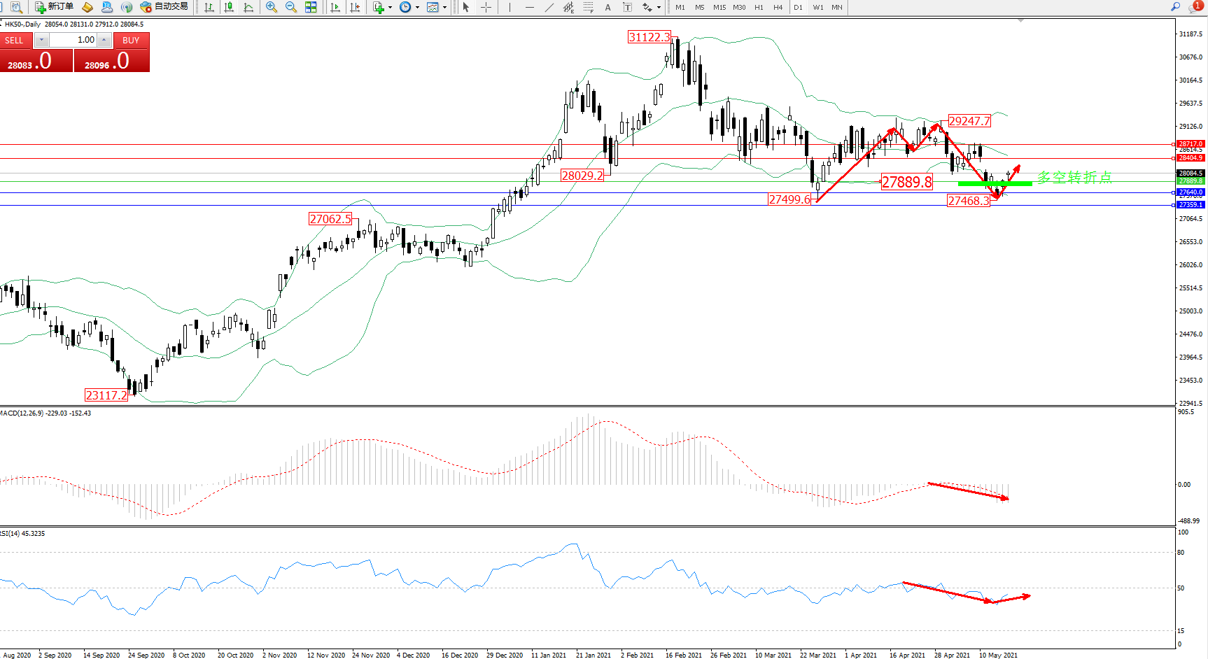 恒指HK50 ——日K线图显示: