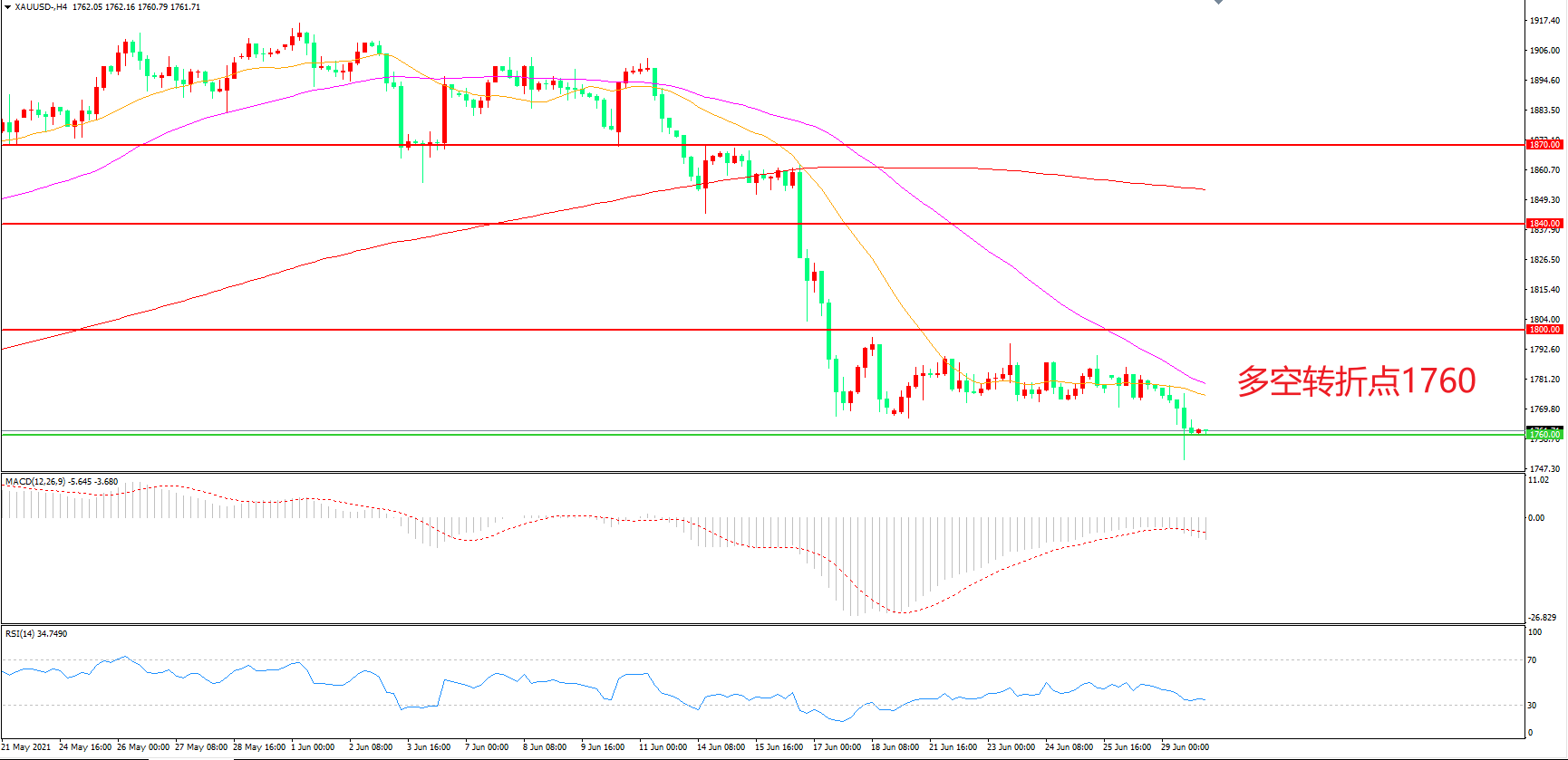 交易策略:在1760.00之下看跌,目标1730.00 1700.00