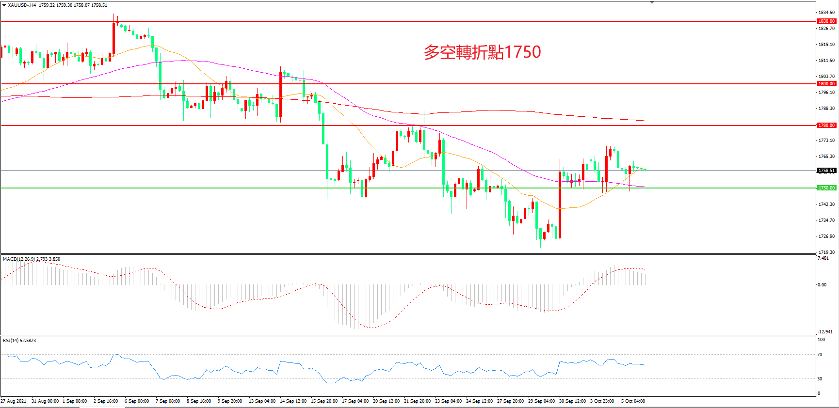 交易策略:在1750.00之上看涨,目标1780.00            1800.00