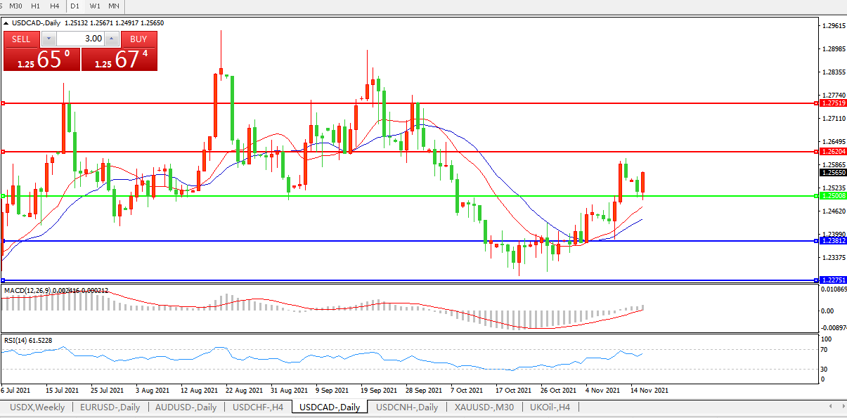 美元兑加元USDCAD 日线图:
