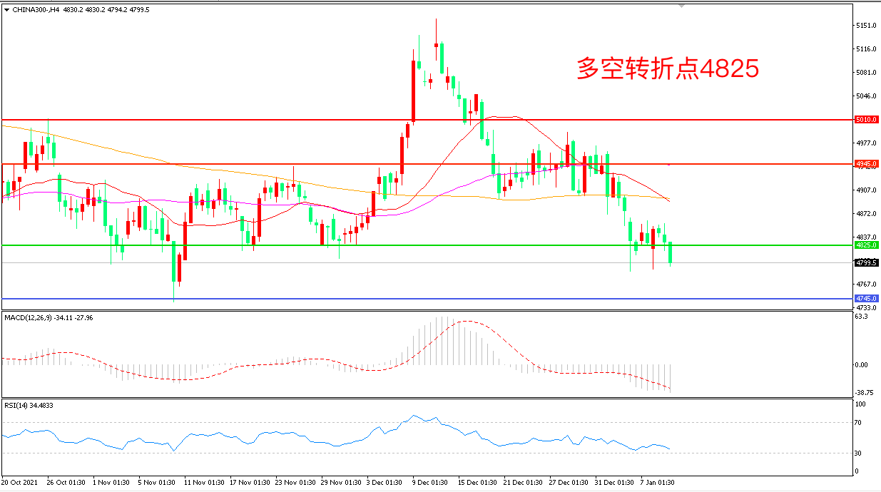 交易策略:在4825.00之下看跌,目标4745.00                4675.00