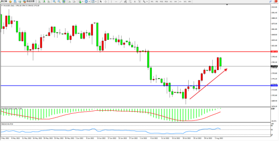 黄金日K线图显示: