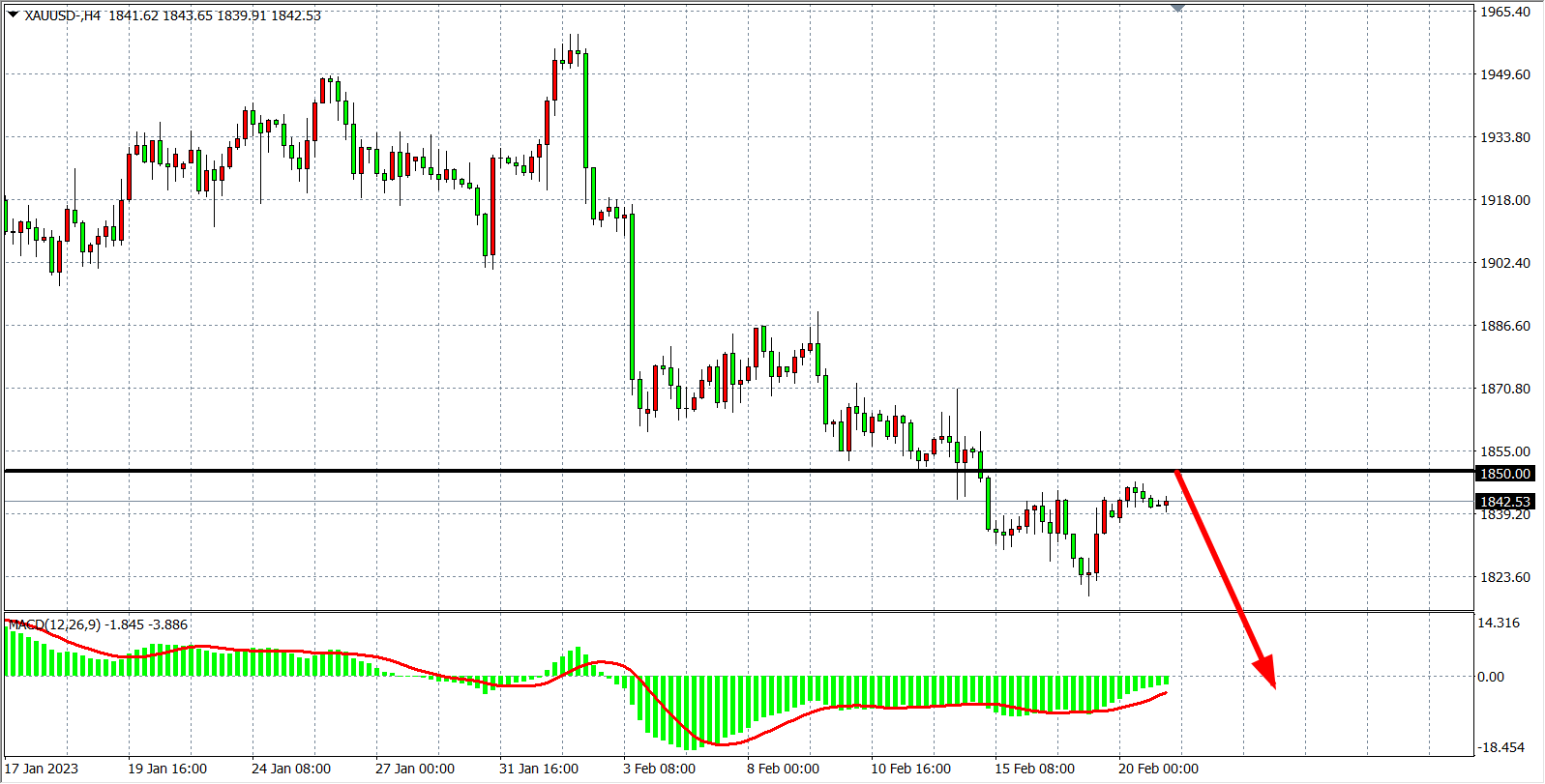 交易策略:在1850.00 之下看跌,目标1820.00 1800.00